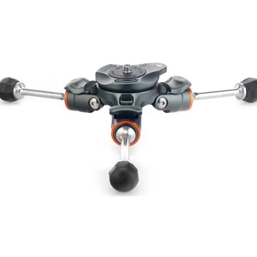 The Rapid-Latch Angle adjustment system allows you to quickly set the angle of each leg independently, even when wearing gloves. All three legs are detachable, allowing you to use the quick levelling system, with optional accessories, as the base for a high hat for low-angle shots, or for working on a tabletop setup. Each detached leg can be used as a monopod or as a boom arm.