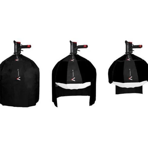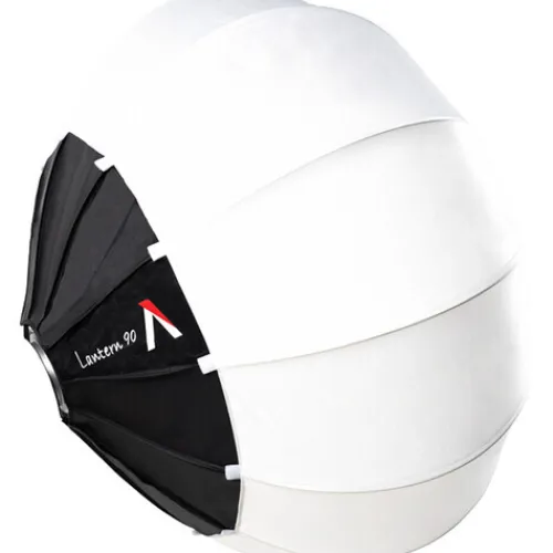 The Lantern 90 from Aputure is designed to be used with LED or strobe fixtures, providing near 360° soft light that spreads evenly over a large area. You can mount it horizontally or suspend it overhead on a boom to increase the ambient light level, reduce shadows, and allow more focused fixtures to do their job.