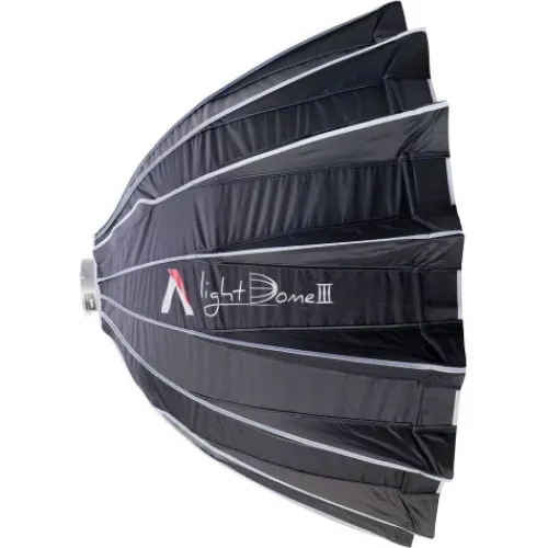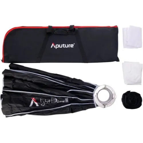 Armed with an upgraded dual-sided and foldable quick release mechanism, the Light Dome III from Aputure accelerates the set-up time for its 16-sided, point source-softening circular softbox, bringing professional, portrait-ready light to any shoot in mere seconds. The parabolic, hexadecanol structure of the Light Dome III is fortified by 16 durable steel support rods, which now snap into place with the downward press of its widely-compatible Bowens Mount bracket, saving valuable time on set. Its shape also promotes uniform light output distribution for soft, even light on any subject. The modifier features a silver interior to maximise the light source’s output and comes with an inner diffuser, 1.5-stop and 2.5-stop front diffusers, and a 40° fabric grid for further light-shaping capabilities.