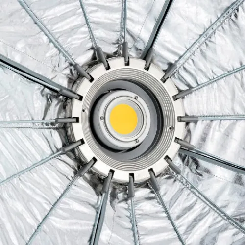 The Light Dome 150’s expansive 5 foot (150cm) transforms Bowens Mount point-source lights into a massive soft source, elegantly illuminating large spaces.