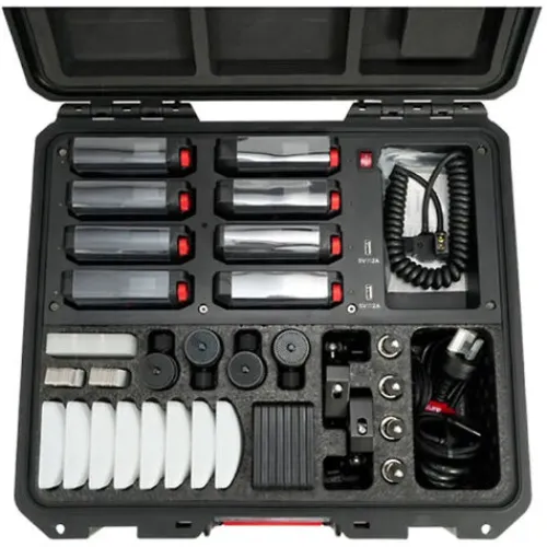 Designed for filmmakers and creators in need of advanced control, the MC Pro Production 8-Light Kit from Aputure offers expanded connectivity options, an IP65 rating, and RGBWW capability, while providing eight lights in a sturdy charging case to cover your entire scene. The kit is packed with a vast number of mounting accessories and magnetic modifiers for more possibilities to adapt and rig an array of MC Pros. This Pro version utilises a similar compact, pocket-sized form factor to the brand’s original MC fixture while bringing professional functionalities. With an upgraded optical design and LED chipset, the MC Pro has an impressive colour temperature range from 2000 to 10,000K and a tighter beam spread of 45° for increased intensity. Each multifunction light allows you to add colour to your productions and can be used for in-camera practical effects or as a portable fill or accent light. You can control it onboard with a TFT colour display, remotely using the Sidus Link app, or via advanced wired and wireless methods, including DMX/RDM and LumenRadio CRMX.