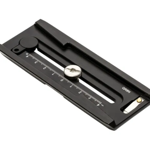 The Benro QR8PRO is a CNC machined aluminium slide-in camera plate with laser-engraved markings, designed to fit S8 and S8PRO video heads. The registration pin is positioned at the front of the plate to prevent twisting with certain video cameras. Rounded edges allow for quicker alignment, and the top of the plate features a non-slip rubber grip surface for added stability.