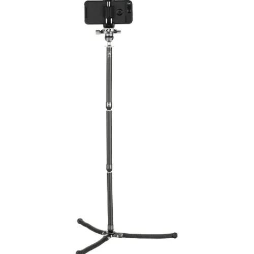Featuring robust Carbon Fibre exterior leg construction, with hidden flexible legs inside, this tabletop tripod can transform to almost any configuration. These flexible legs offer security and stability on whatever surface or object you mount it to. Use the 1/4-20″ threads to combine the flex legs with the carbon fibre legs to create unique configurations or connect them together for a quick selfie stick or livestream stand.