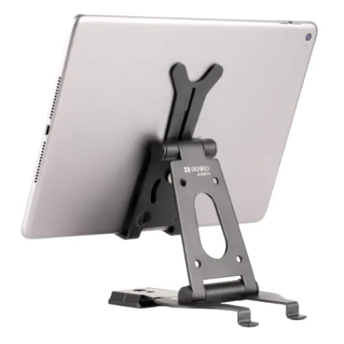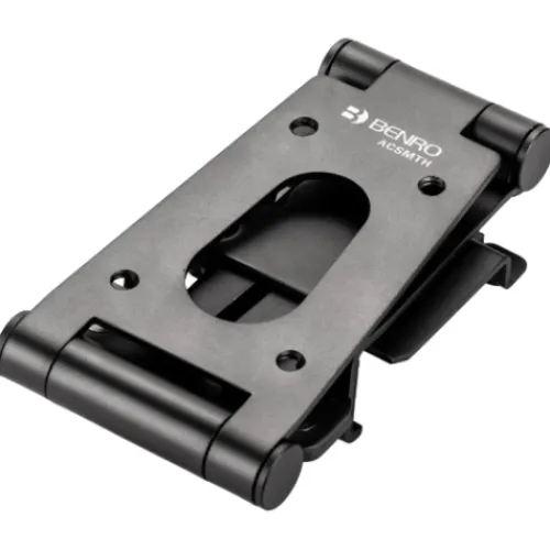 Get ready to expand your mounting capabilities with the ultra-compatible and versatile Benro ArcaSmart Tablet Holder, ideal for content creation, live streaming, virtual meetings, and more. This innovative support system features an extendable plate that can securely hold tablets when opened and smartphones when closed, with anti-skid rubber pads to prevent accidental slips. For added stability, the support plates can be opened when placed on a surface, revealing a dual-system quick release plate designed for both Arca-Style and RC2 compatible tripod heads. The quick release plate includes ¼”-20 and ¾”-16 mounting holes, while four built-in ¼”-20 accessory mounts offer additional expansion options. For ultimate convenience, this tablet holder folds up super-compact for easy storage and transport.