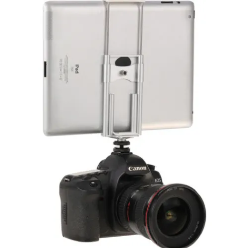 The MeVIDEO Livestream Tablet Holder from Benro is a lightweight and versatile clamp designed to securely attach a tablet to tripods, stands, brackets, or other rigs with a 1/4″-20 male stud. This holder is perfect for live streaming, using the tablet as a wireless monitor, or video chatting, offering a range of possibilities for content creation. The dual 1/4″-20 threads on the clamp allow you to adjust its centre of gravity, ensuring stability and flexibility based on your specific setup.