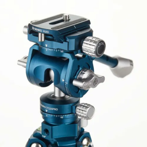 The Q2 Triple Action Arca-type ball head features separate head and pan locks, a 360° pan index, and an integral bubble level. The included quick release plate has a 1/4″-20 camera screw and rubberised pads for added traction to prevent the camera from moving and protects the finish from marring.