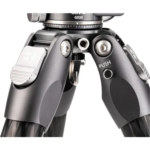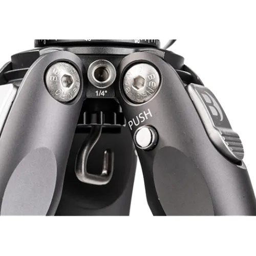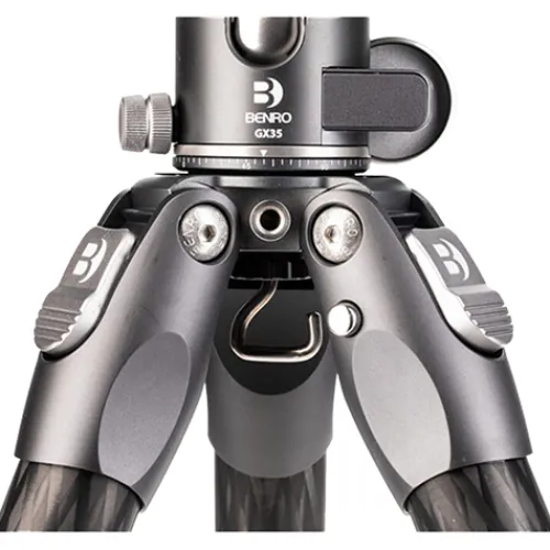 Benro’s Tortoise Columnless Carbon Fiber Three Series Tripod with GX35 Ball Head is a compact, lightweight travel tripod with a high load capacity. The legs offer independent spread and three locking positions and incorporate automatic leg angle adjustment for a fast and sure setup. Extension arms, monitors, lights, and other accessories can be mounted to the spider’s aluminium legs using 0.63cm-20 accessory mounts. Three distinct contact surfaces provide grip on the rubber feet.