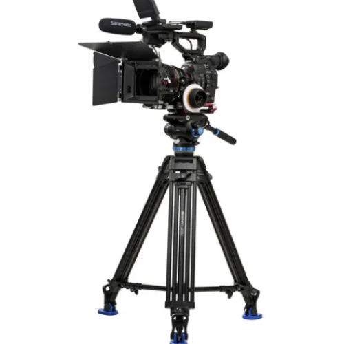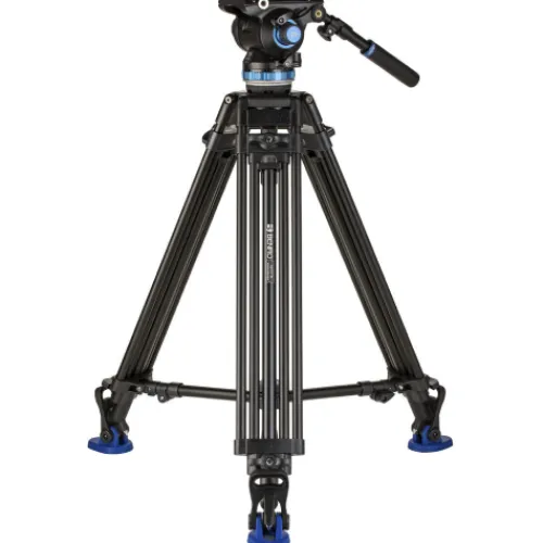 The Benro A673TMBS8PRO is a versatile 75mm bowl 2-stage, 3-section tandem style video tripod, paired with the S8PRO video head. It features twist locks for secure height adjustments and a height-adjustable, removable mid-level spreader for added stability. This tripod is designed for convenience and portability, coming with a carry case, rubber feet, and dual spiked feet to adapt to various shooting conditions.