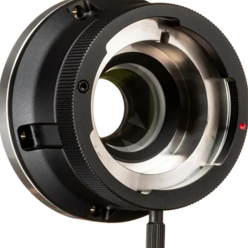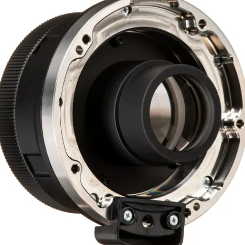 The Blackmagic Design URSA Mini Pro B4 Mount is a replacement mount designed for the URSA Mini Pro, enabling the use of ENG-style B4 mount HD lenses. It incorporates corrective optics to adapt lenses built for three-sensor cameras with prisms to the single-sensor URSA Mini Pro, ensuring high image quality without optical degradation. This mount accepts B4 lenses and includes a locking lever for secure lens attachment. A shim kit is also provided, allowing precise flange distance adjustment for optimal performance.