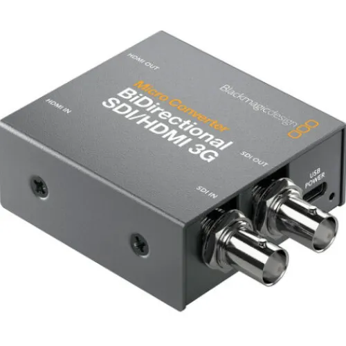 Easily combine SDI and HDMI components in your video setup with the Micro Converter Bidirectional SDI/HDMI 3G from Blackmagic Design. This compact bidirectional converter can simultaneously convert SDI to HDMI and vice versa, even when using different standards, and it supports resolutions up to DCI 2K in SDI and 1080p60 in HDMI. It also offers camera control conversion for Blackmagic HDMI cameras like the BMPCC 4K or 6K, enabling you to use them with an SDI-based live switcher. The Micro Converter Bidirectional SDI/HDMI 3G features HDMI timecode support, SDI re-clocking for stability over long cable runs, support for a wide range of pro broadcast resolutions including cine-style 48 fps, and both HDMI and SDI embedded audio input and output.