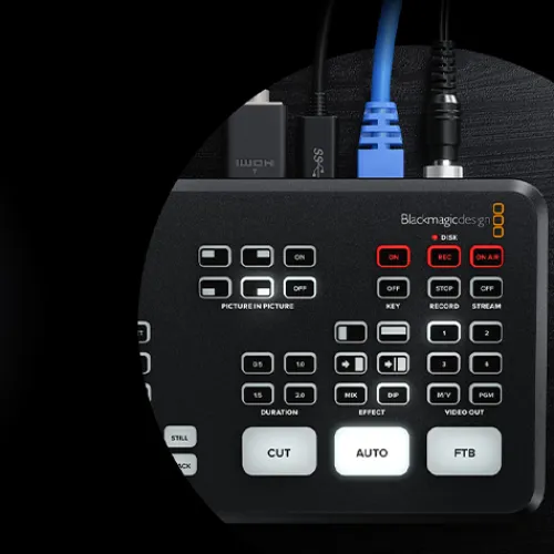 Boasting a built in Fairlight audio mixer, the Switcher allows for live sound mixing at a professional level.