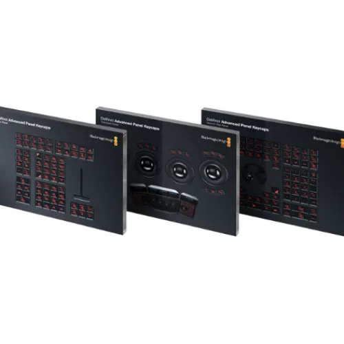 The DaVinci Advanced Panel Keycaps from Blackmagic Design offer replacement keycaps for the DaVinci Resolve Advanced Panels compatible with Resolve Version 17. This set includes keycaps for all three panels: the trackball panel, the T-bar panel, and the Search Dial panel, ensuring your setup remains in top condition.