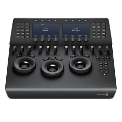 The DaVinci Resolve Mini Panel from Blackmagic Design offers enhanced functionality over the Micro panel while excluding some features of the Advanced panel, and it includes DaVinci Resolve Studio software. This portable control surface is perfect for those who need to switch seamlessly between editing and colour grading. It can be placed on your desktop, mounted in a rack, or bolted to a surface. Like the Micro panel, it features three high-resolution, weighted trackballs and 12 control knobs for quick access to essential primary colour-correction tools in the Resolve software. Additionally, 18 dedicated keys on the right side provide easy access to the most commonly used grading features and playback controls.