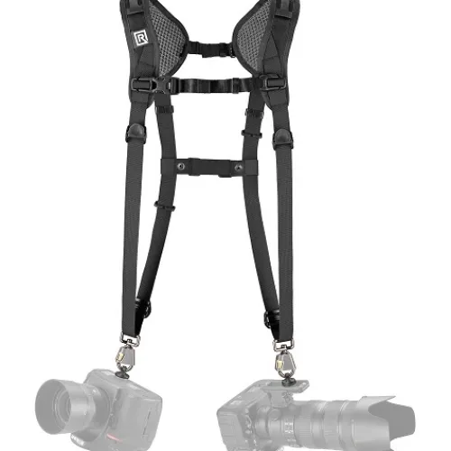 Adjustable straps help provide stability and keep the harness from slipping off your shoulders. To keep your cameras even closer, BlackRapid CoupleR Breathe Straps (available separately) can be attached to the front and back strap, preventing your cameras from excessive movements.