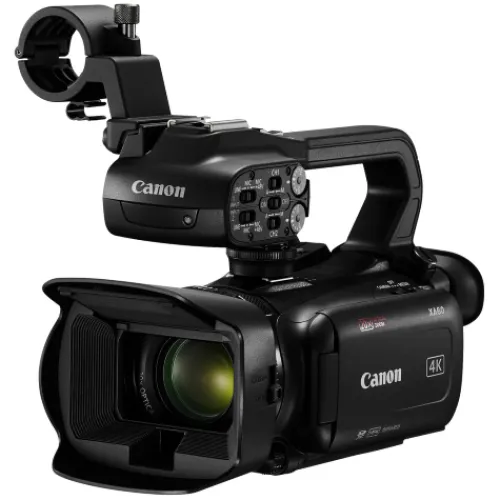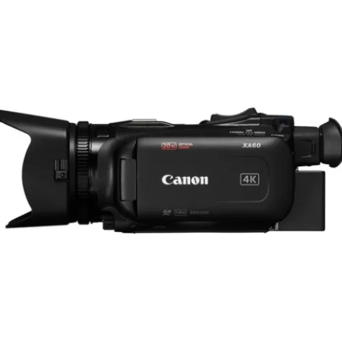 The Canon XA60 Professional UHD 4K Camcorder is a small, lightweight camera that shares many features with its predecessor, the XA45, such as UHD 4K capture and a 1/2.3″ sensor “It has a CMOS sensor, two XLR audio inputs, and one mini-HDMI output, making it suitable for documentary or journalism-style productions. This slimmer variant has a larger 3.5mm LCD capacitive touchscreen display and a better resolution tiltable 0.36” display “OLED EVF, XF-AVC and MP4 recording formats, OSD metadata recording, and fast USB Type-C video-only output with UVC support for live streaming to a computer.