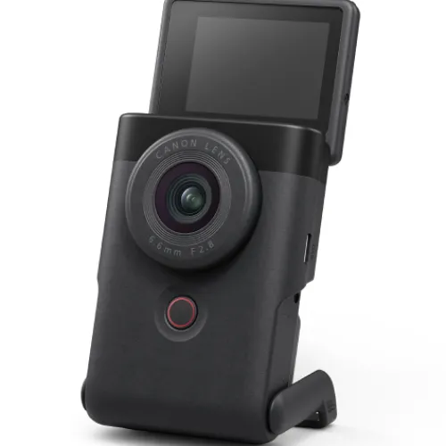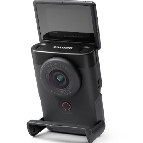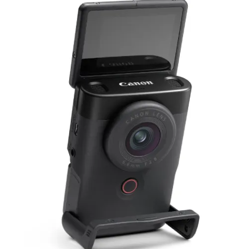 Create and share content in a unique way with the PowerShot V10. Perfectly designed for content creators, this camera has all the features you need to make your content stand out – including a built-in stand, microphone and lens.