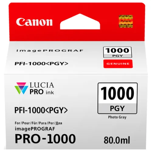Canon’s LUCIA PRO PFI-1000 Photo Gray Ink tank is compatible with the Canon imagePROGRAF Pro 1000 Inkjet Printer.