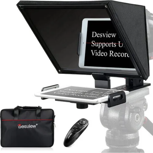 With the Desview T12 Foldable Portable Teleprompter, you can use a DSLR or camcorder to record content for social media while getting the script-reading abilities of a teleprompter. A 130° hinge arrangement guarantees simple storage and rapid setup. While looking into the lens of your recording device, clearly read scrolling text on your smartphone or tablet. Folded and fitted with custom foam inserts, the multicoated 70/30 beamsplitter glass teleprompter can be stored in the provided bag.