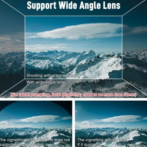 It supports shooting with the wide-angle lens more than 40mm, providing larger vision without vignetting. (For tablet prompting, the focal length may need to be more than 50mm). It features a dustproof, anti-scratch and anti-collision design and employs a lens cover providing double protection to the glass. The teleprompter is extremely lightweight and portable with only 340g weight.