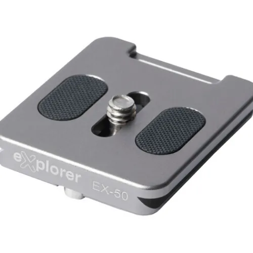 The Explorer EX-50 Quick Release Plate from Explorer Photo & Video is a compact and lightweight accessory designed for Explorer ball heads and other Arca-type compatible heads and clamps. It’s perfect for mirrorless cameras, DSLRs, and various accessories. The EX-50 features non-slip rubber traction pads for a stable grip, and it uses a 1/4″-20 mounting screw for versatile attachment. For added security, it includes dual safety stops to prevent the plate from accidentally sliding out of compatible quick release clamps. Enhance your setup with the EX-50 Quick Release Plate for reliable performance and convenience.