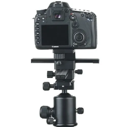 Cameras can be mounted on top of the rail via the integrated 1/4-inch screw which uses a large knurled thumbwheel to securely attach to the tripod mounting socket. The rail can be attached to most tripods or ball heads with a standard 1/4-inch mounting thread on the bottom of the unit.