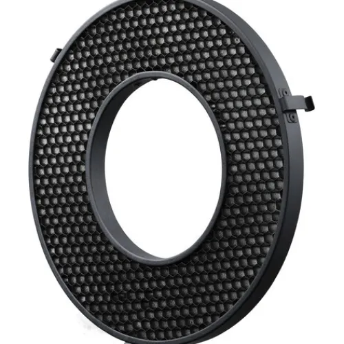 Godox’s 40° Honeycomb Grid designed for the R1200 Ring Flash Head functions as a modifier that restricts the beam spread of the flash head, effectively eliminating spill light and enabling selective lighting.