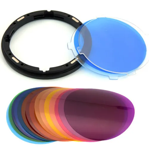 The Colour Effects Set for Round Flash Heads, designed for use with the Godox V1, H200R, and speedlights using the S-R1 adapter, features a collection of 15 creative colour gel filters, with two of each included in the set. The filters encompass a range of colours including Bastard Amber, Straw, Light Amber, Light Flame, Golden Amber, Light Red, No Colour Pink, Middle Rose, Light Rose Purple, Surprise Pink, No Colour Blue, Daylight Blue, Primary Blue, Moss Green, and Blue Green, offering diverse options for adding artistic effects to your photography and lighting setups.