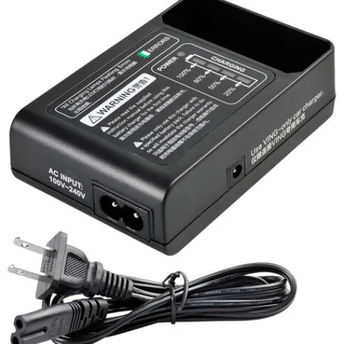 The Charger for Ving Flashes from Godox is designed to efficiently recharge the Li-ion battery of Ving-series on-camera flashes using a universal 100 to 240 VAC current. With a charging time of just 2.5 hours, this charger ensures that your flash is quickly replenished and ready for use, providing convenience and reliability for your photography needs.