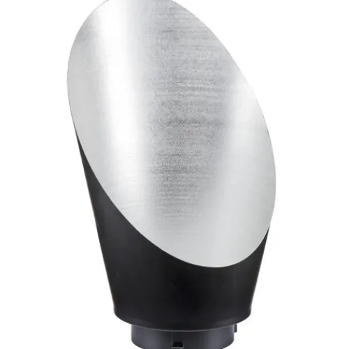 The Godox Oblique Background Reflector is designed as a light modifier specifically for creating a graduated oval lighting pattern when positioned behind a subject during portrait photography, ensuring uniform illumination of the background. Its interior is textured with silver for consistent light distribution, and its deep structure enables a lengthy light throw. This reflector is versatile, working seamlessly with studio strobes, LED monolights, and similar light fixtures utilizing a Bowens-style mount, making it adaptable for various lighting setups.