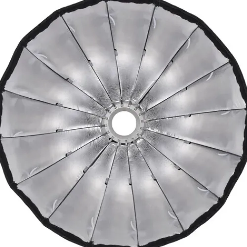 Ideal for portraits or fashion photography, this 35.4″ 16-sided light-shaper from Godox offers focused, soft output with a punchy, crisp edge that adds dimension and detail to your subject, as well as natural-looking catchlights in their eyes. The unique depth of the modifier gives significant falloff at the field edge, providing directional control, reduced spill light, and easy feathering. The Parabolic Softbox comes with removable outer and inner diffusers that can be used together, one at a time, or not at all to achieve different levels of contrast. A carry bag is included for storage and transport.