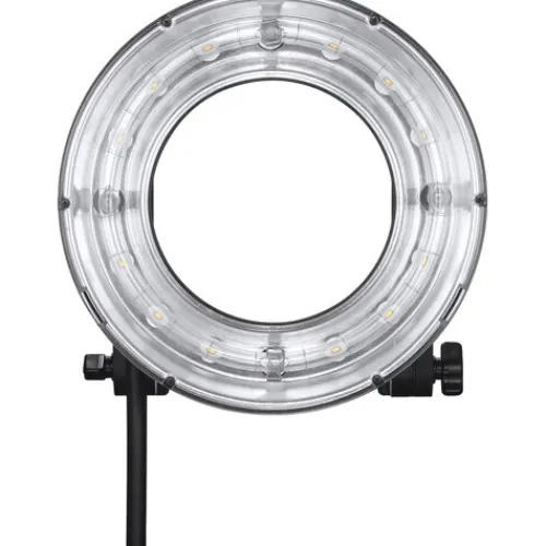 Introducing the 200Ws, 18.80 cm diameter Godox Ring Flash Head designed for the AD200 and AD200Pro Pocket Flashes, further enhancing the capabilities of these compact flashes. This ring flash imparts a soft, halo-like quality of light and captivating catchlights in your subject’s eyes, adding depth and dimension to your photographs. With a 10W modeling light offering low, medium, and high power settings, and an output of 1380 lux at 1.6′, this ring light provides ample illumination for your creative endeavors.