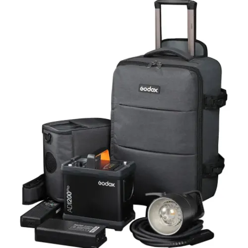 The AD1200Pro Battery Powered Flash Kit is a versatile lighting solution offering wireless control via the 2.4 GHz wireless X system, with a range of up to 100m. With 1200Ws of power, this kit is compatible with various TTL systems including Canon, Nikon, Sony, Fujifilm, Olympus, and Panasonic. It provides up to nine steps of output power, ranging from 1/1 to 1/256, giving photographers precise control over their lighting. The kit includes a powerful 36V/5200mAh lithium-ion battery pack, offering up to 500 full-power flashes, making it ideal for outdoor or location shooting. Additionally, you have the option to run the monolight on AC power with an optional adapter.