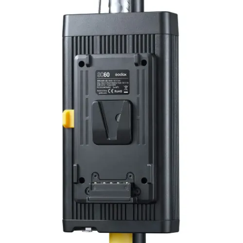 The S60 comes with a separate control box that supports AC power or an optional V-mount battery for location shooting.