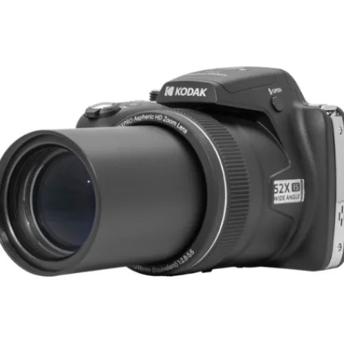 The Kodak AZ528 Astro Zoom Camera Collection is a versatile, compact camera that offers impressive zoom range and flexible imaging capabilities. It features a 16MP 1/2.3″ BSI CMOS sensor, allowing for a quick 6-fps shooting rate and Full HD 1080p video recording at 30 fps with a sensitivity range from ISO 100-3200. The BSI design of the sensor helps to maintain low noise and high clarity for truer colours and accurate rendering in a variety of lighting conditions. The camera also has an impressive 52x optical zoom lens, covering a 24-1248mm equivalent focal length range, and optical image stabilisation to minimise the appearance of camera shake for sharper handheld shooting. You can also compose and review imagery on the rear 7.62cm 460k-dot LCD monitor, and use the built-in Wi-Fi for wireless transferring of imagery and remote camera control from a linked smartphone or tablet.