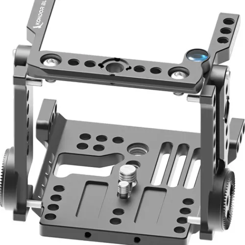 Add protection and a variety of accessories to your RED KOMODO 6K cinema camera with this grey Camera Cage from Kondor Blue. The camera mounts onto the form-fitting cage using top and bottom screws to prevent twisting or slipping, and rubber padding on the base protects the camera from scratching or moving. Its open design allows you to access all the camera’s ports and controls.