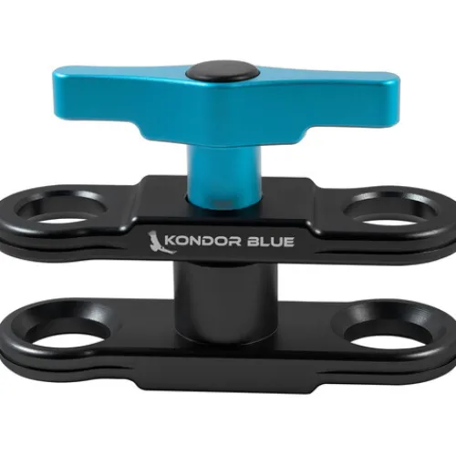 The Kondor Blue Cine Magic Arm Center Clamp in black allows you to connect up to two 1-inch ball heads, giving you flexibility to mount accessories onto a camera cage at almost any angle. It features a large thumb knob for tightening the clamp, ensuring a secure hold around the ball heads. Made from lightweight aluminium, it provides a sturdy connection without adding extra bulk to your camera cage setup.