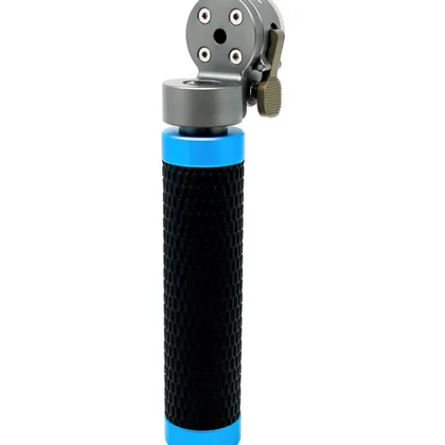 The aluminium space grey Quick Release Rosette Handgrip from Kondor Blue is designed to connect to the right side of your rig, and it features a nonslip textured rubber handle, an ARRI-type rosette, and an M6-threaded locking lever. This rosette handle can be attached to any ARRI-compatible rosette system with an M6 threaded mounting hole. A thumb lever allows you to make quick position adjustments without having to unscrew the handgrip.