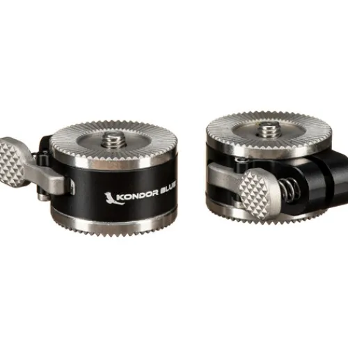 Introducing the Raven Black Quick-Adjust Rosette Module Set from Kondor Blue, featuring both left and right-side modules for versatile rosette mounting support adjustment. Crafted from durable aluminium, these compact modules mount seamlessly onto your rig’s rosette with the inset M6 screw, ensuring a clean rosette face for attaching your ARRI rosette-mounted handgrip. With spring-loaded thumb levers, these modules enable quick orientation adjustments of your handle without the need to loosen it from your support. This allows for fast and secure angle adjustments without interrupting your shooting process, streamlining your workflow for maximum efficiency.