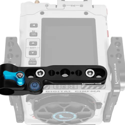 Mount a lens motor, a top handle, and various other accessories atop your RED KOMODO-X or KOMODO camera using the raven black Top Plate from Kondor Blue. Whether used independently or as part of the Kondor Blue KOMODO-X camera cage, this plate offers versatile mounting options. It features a single 15mm rod clamp, one NATO rail, one 3/8″-16 anti-twist thread, and two anti-twist 1/4″-20 accessory threads. Additionally, it is compatible with the RED Outrigger handle and Kondor Blue top handles, and includes a convenient bubble level for precise adjustments.