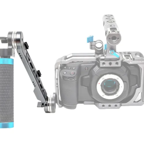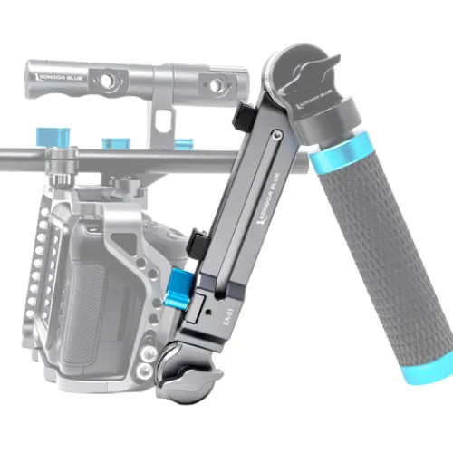 Introducing the Space Grey Adjustable Rosette Extension Arm from Kondor Blue, designed to enhance your rig by adding handgrips or other accessories to the right side using ARRI-compatible rosettes. With a length adjustable from 8 to 11.5 inches via the center screw, secured by a blue captive locking lever, this arm offers flexibility in rig customisation. Additionally, two cable clips along the side of the arm ensure your cables remain organized and secure. Compatible with a wide range of accessories utilizing ARRI-compatible rosettes, this extension arm elevates the functionality of your rig effortlessly.