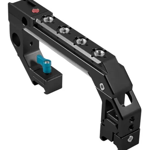 The handle has a modular design that is reversible for compatibility with EVF and single or dual NATO points of contact. It also features a start/stop remote trigger button and includes a 2.5mm LANC control cable to connect to a variety of camera models including the URSA Mini. A switch on the handle allows you to change between two modes of camera control for compatibility with different brands and models. The grip of the handle has an ergonomic design to maximize comfort.
