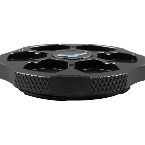 Shield your Nikon F-Mount camera’s mount and sensor with the Black Aluminium Body Cap from Kondor Blue. This cap features engraved mounting indicators, providing guidance on the correct turning direction while being held by its edge-gripping ridges. Once attached, the cap securely locks into the camera’s mount, and its anodized finish ensures protection against scratches and scuffs.