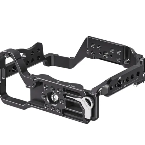 The cage features a 1/4″-20 mounting screw, compatible with any Arca-Swiss style clamp, allowing for quick and secure attachment to tripods and other support systems. The precisely engineered design ensures a snug fit without interfering with the camera’s operation, providing unrestricted access to all ports, buttons, and battery compartments.