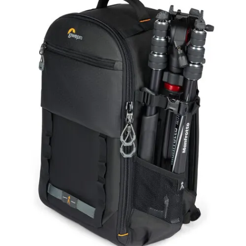 The black Adventura BP 300 III Backpack from Lowepro is a classic photography pack that is perfect for transporting, organising, and protecting your entire photography kit. The Adventura BP 300 has ample room to organise a camera body with a full set of lenses. It offers convenient front access and has a 13” laptop pocket. The backpack can hold a full-frame mirrorless camera, including a Sony Alpha 7-9 series with a lens attached, as well as four additional lenses or a foldable drone such as the DJI Mavic Pro 2. There is also a pocket for a 13″ laptop and space for small accessories. The large side pocket can accommodate a compact tripod, including a GorillaPod 5K or a Befree Advanced. The front of the pack has a tripod attachment that can hold a larger tripod.