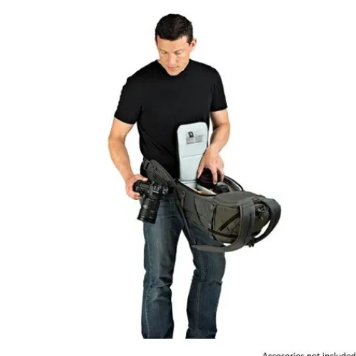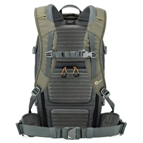The Lowepro’s ActivZone suspension system provides comfort from sun up to sun down. A breathable, moisture-wicking back panel helps keep you cool and offers targeted support for your lower back when the bag’s fully loaded. The ergonomic shoulder harness system is well-padded and adjustable for comfort and better weight distribution.