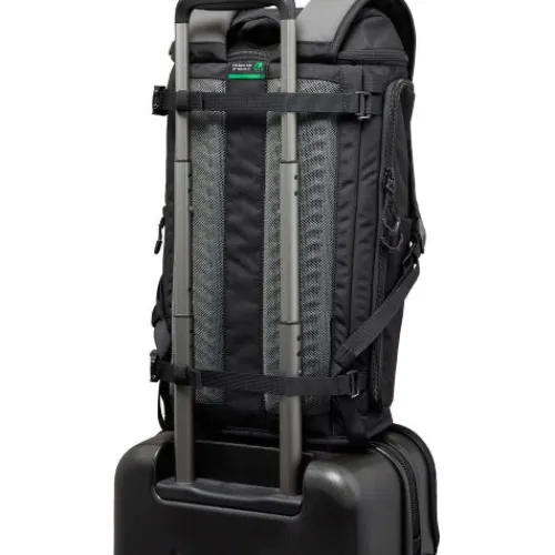 Keep your camera gear and personal items protected during transport in the black, 25L ProTactic Lite BP 150 AW III Backpack from Lowepro. Top and side openings offer easy access to the main compartment, and a large, stretch front pocket stores accessories. The high rise divider offers customisable interior organisation, and the pack accommodates a separately available GearUp camera insert or ProTactic SLX bag for additional organisation. The hybrid webbing attachment system is compatible with SlipLock accessories or standard MOLLE or PALS pouches. Three exterior pockets hold your water bottle, travel tripod, and umbrella. The molded EVA back panel, dual-density harness, padded backpack straps, and SlideCam sternum strap ensure the pack is comfortable to carry, even on long hikes.