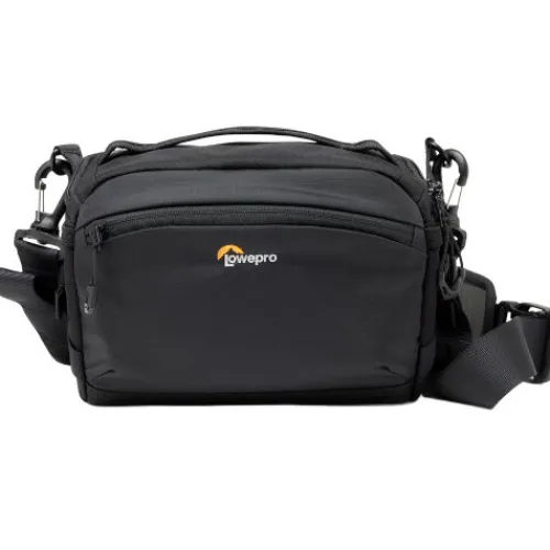Carry and protect your mirrorless camera kit in the black, 4L ProTactic Lite SLX 110 AW III Sling Bag from Lowepro. This versatile bag accommodates a full-frame mirrorless camera with a 24-70mm lens. It has a top carry handle and a removable shoulder strap for wearing as a sling or a shoulder bag. It has multiple pockets including stretch side pockets for lens caps, a front pocket with key leash, a zippered door pocket, and a flat padded pocket on the rear. MaxFit dividers let you customise the interior to best fit your gear.