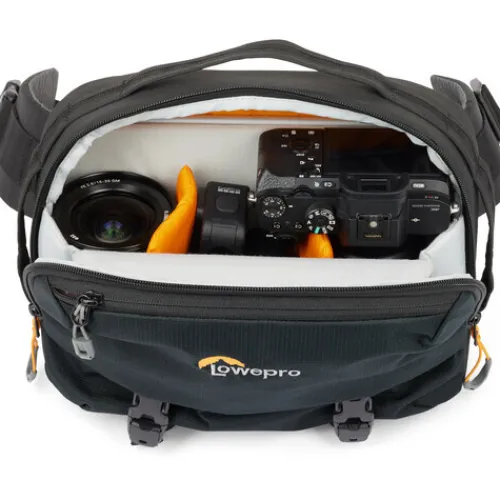 The Lowepro Trekker Lite SLX 120 – BlackĀ is a versatile sling-style bag that is perfect for carrying your full-frame mirrorless camera and additional lenses. It can hold a camera with a lens attached, plus two additional lenses or a 70-200mm lens placed horizontally. The bag is also large enough to hold a foldable drone like the DJI Mavic Pro with accessories. It also comes with a sleeve for a 10.5-inch tablet and two straps on the bottom that can hold a compact tripod, such as a GorillaPod 5K or a water bottle holder. Additionally, you can use the bottom straps to carry a small rolled-up jacket. The shoulder strap is adjustable and can be positioned on the right, left, or horizontally for various carrying options.