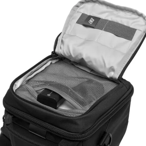 Its top-loading design, wraparound zipper, and smooth interior lining allows you to get your gear in and out quickly. The bottom of the bag can expand, so you can carry a long mounted 24-70mm f/2.8 lens without compromising protection. A separate shallow accessory pocket on the lid gives you an easy place to keep batteries, memory cards, and cables.