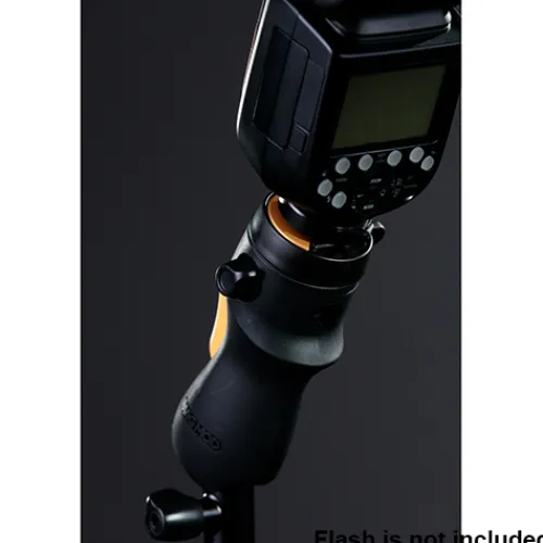 You can simply slide your flash in, rotate the lock 90 degrees, and you’re ready to go. Also, it has a large squeezable button that allows you to alter the angle with one hand.